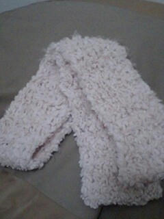 最近貰ったのは編みかけのマフラー……。30㎝も編めてない。